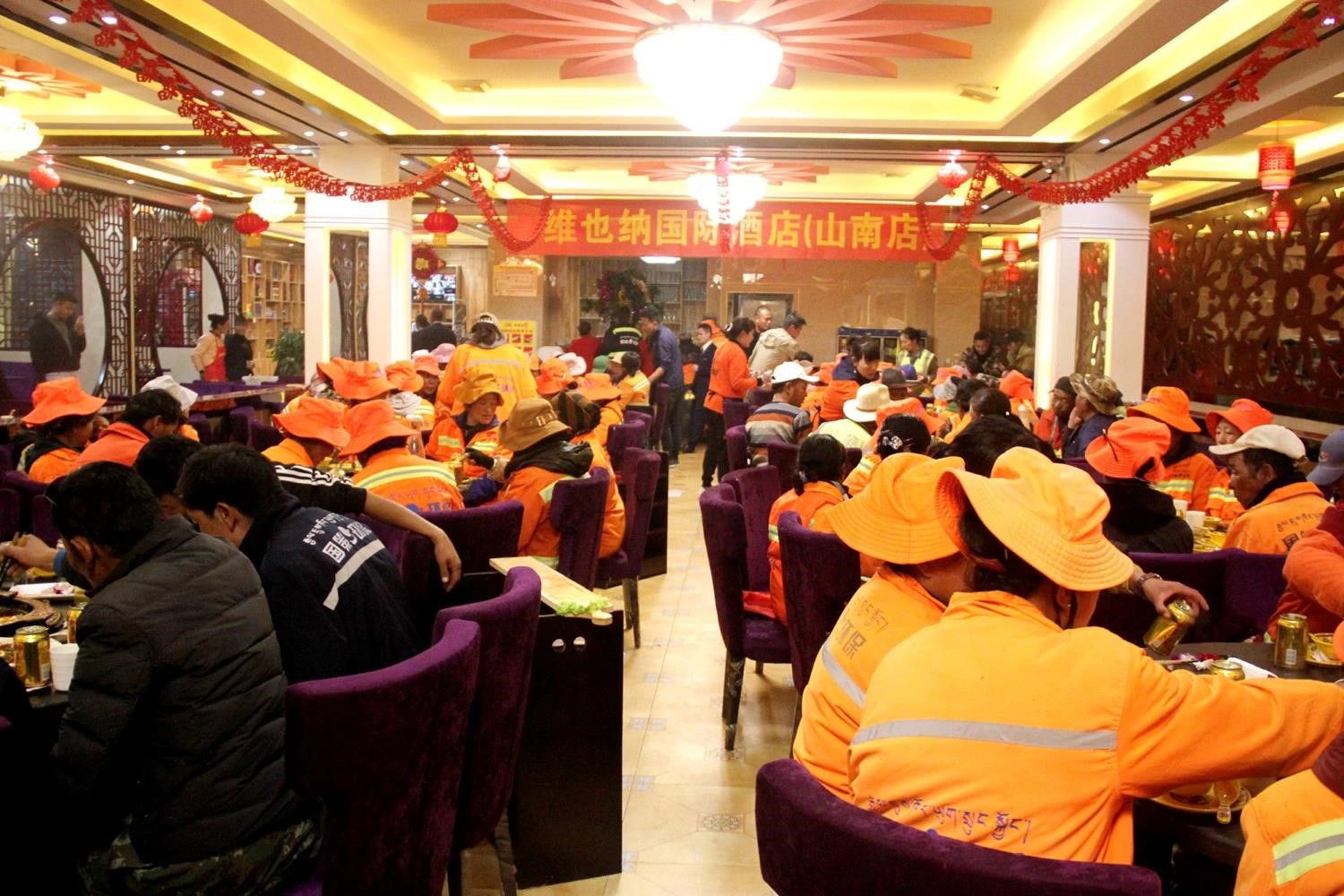 慰问活动结束后,主办方邀请所有环卫工人同吃火锅宴。秘制火锅汤料,冒着热气儿,散着香味儿,开胃小菜,各种酱料,时鲜蔬菜,鱼肉等丰盛的菜品让“城市美容师”们吃的既暖胃,又暖心。