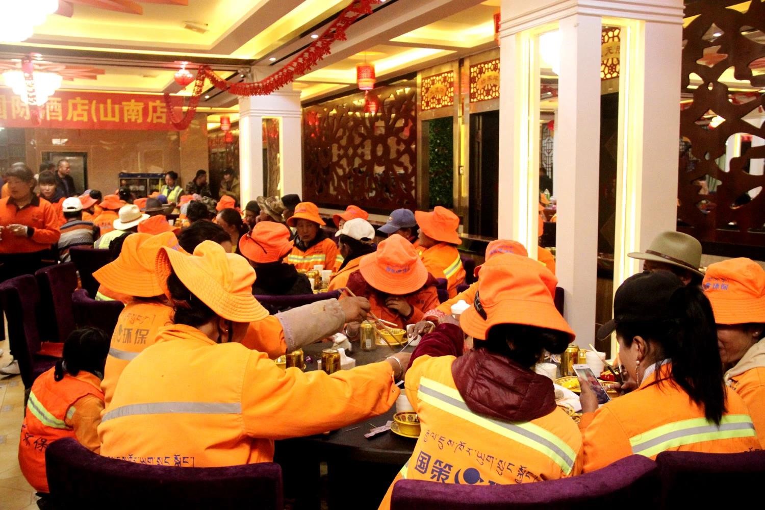 作为城市的美容师,国策环卫工人为乃东城区的干净整洁付出了辛勤的劳动,用实际行动诠释了“爱岗、敬业、无私、奉献”的工作理念,在平凡的工作岗位上做出了不平凡的业绩。维也纳国际酒店山南店董事长易树东代表酒店承诺,不乱丢垃圾,爱护环境,从身边做起,为市容美丽奉献自己的一份力量。